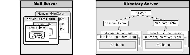 Для каждого Пользователя Directory-based Домена создаётся запись справочника, objectClass которой - CommuniGateAccount. Эта запись хранит в себе Установки Пользователя (включая Дополнительные Установки).
